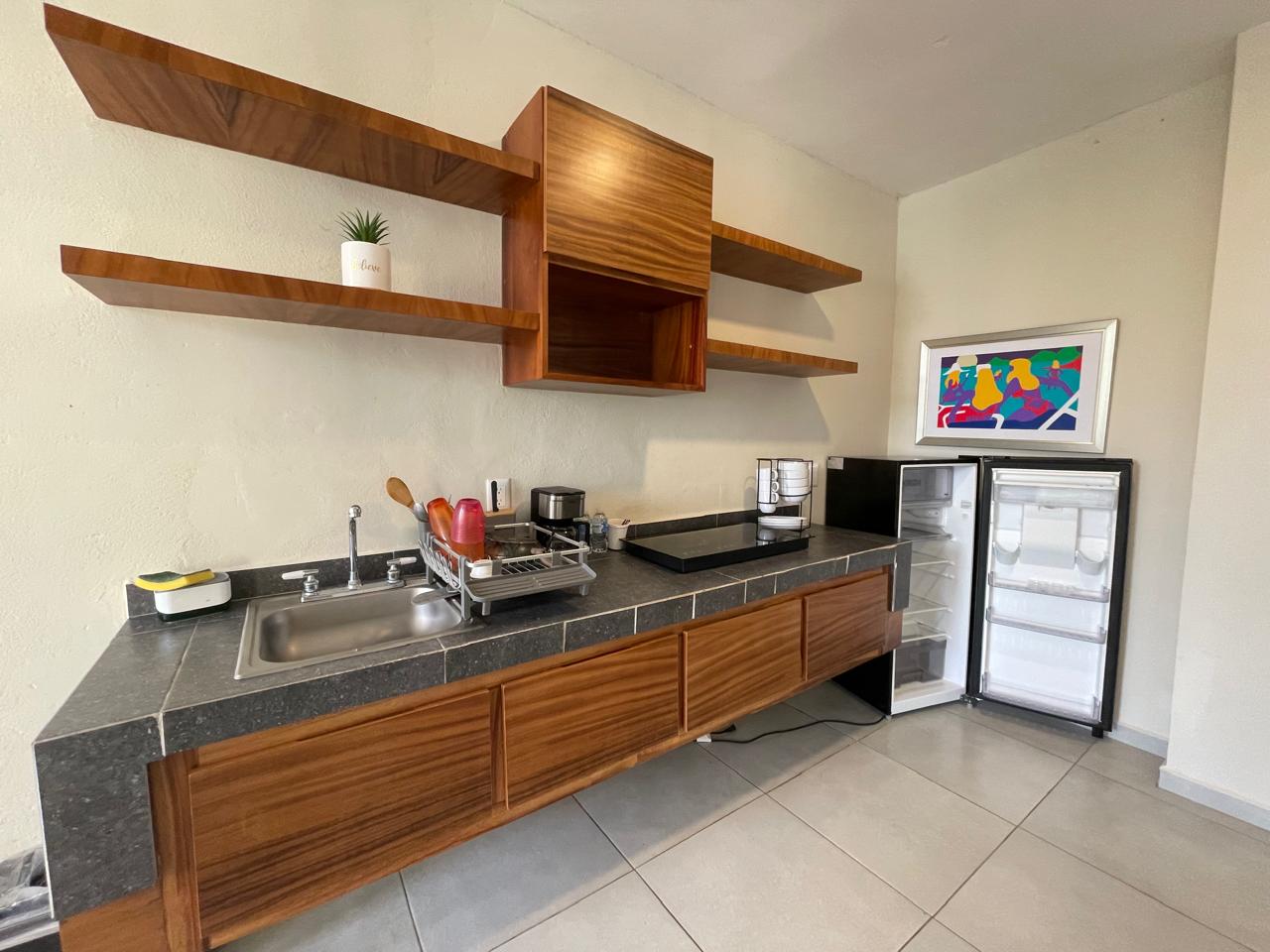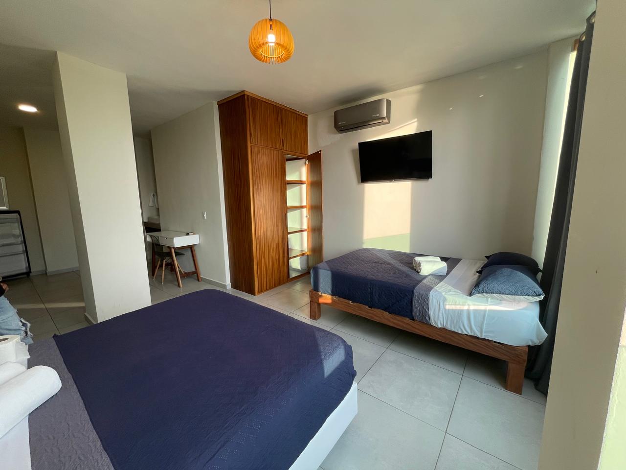 Relájate en nuestra alberca con vista a la bahía y disfruta del sol en un entorno tropical.